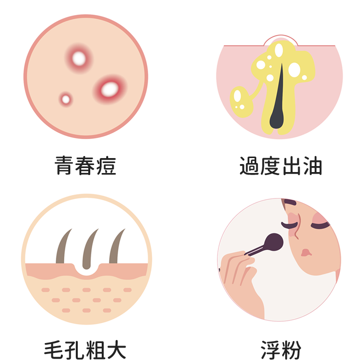 透過降低出油,使毛孔不易阻塞,進而達到改善「各種類型痘痘」與「過度出油」的效果